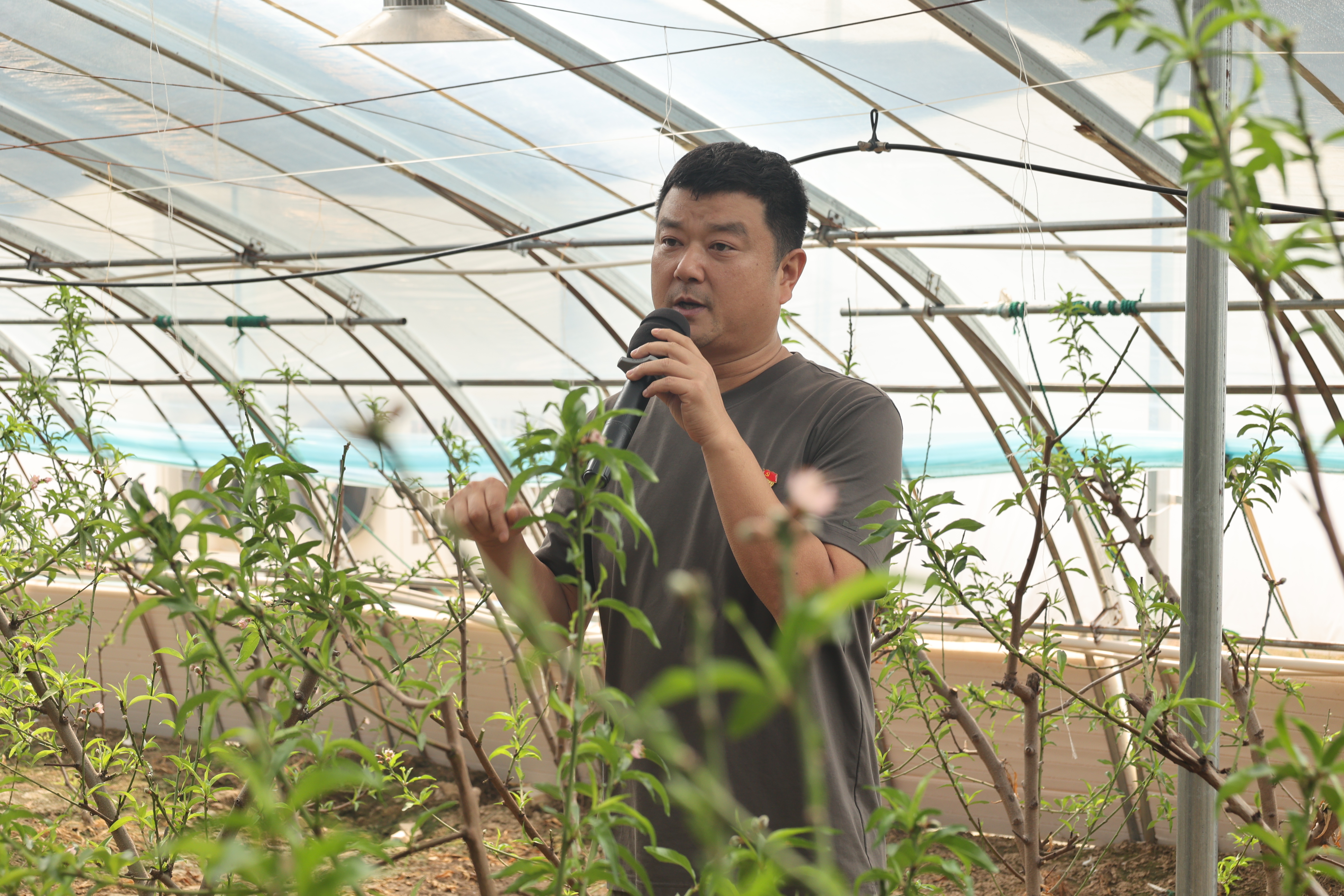 在四季百桃園,38號棚里的桃樹已進(jìn)入開花階段,40號棚里的桃樹剛剛結(jié)束休眠期進(jìn)入發(fā)芽階段,大家對設(shè)施黃桃種植技術(shù)及發(fā)展現(xiàn)狀、遠(yuǎn)景進(jìn)行了學(xué)習(xí)交流,了解了設(shè)施黃桃生產(chǎn)管理技術(shù)方面的先進(jìn)經(jīng)驗(yàn)和做法,進(jìn)一步拓寬了視野。